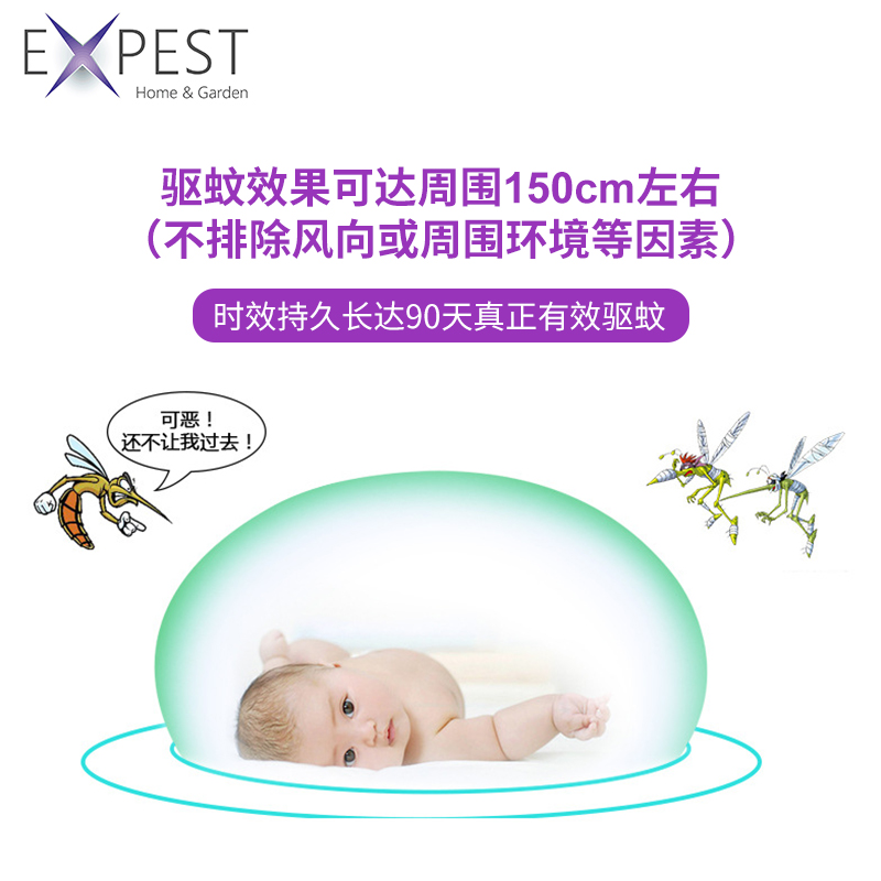 EXPEST純天然混合精油驅蚊扣,時效持久長達九十天,驅蚊效果可達周圍150cm左右,時刻保護寶寶健康。
