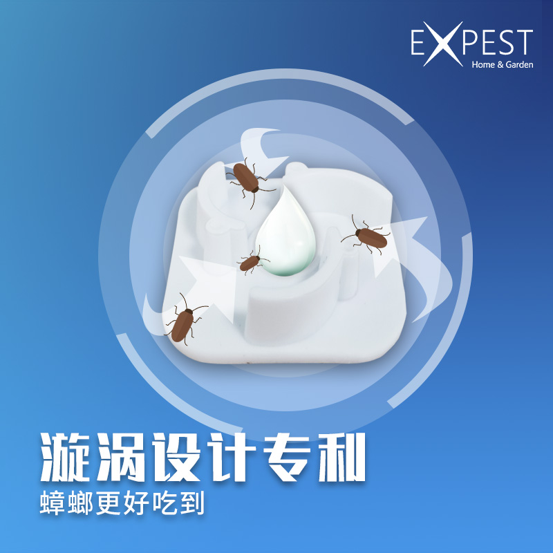 EXPEST自主研發漩渦設計,更利于蟑螂吃到膠餌,從而更高效的消滅蟑螂,且對嬰兒寵物無危害