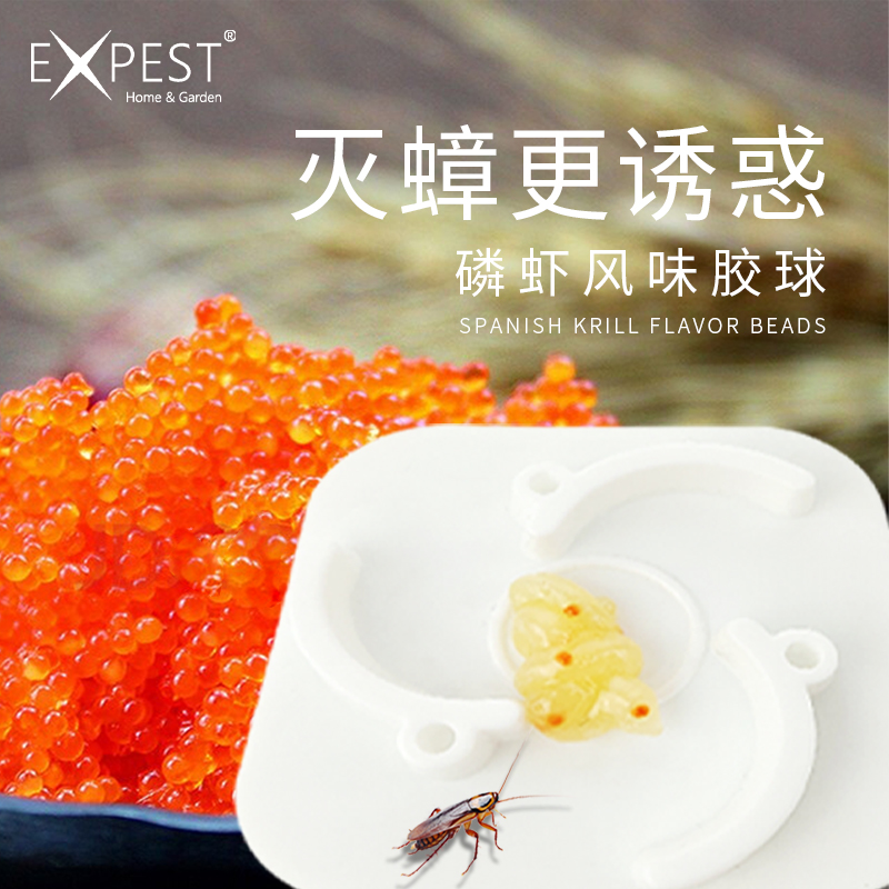 EXPEST自主研發磷蝦風味膠球。產品采用最新的食材配方,多重方向來吸引蟑螂取食,最終達到全巢殺滅的效果。 產品配方已經應用于德、美、英、日、韓、印度、新加坡、泰國、馬來西亞、越南、迪拜、土耳其等國家市場。