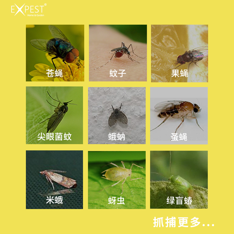 EXPEST秉承安全環保的理念,物理方式捕捉,不使用殺蟲劑,既環保又安全,解決煩人的蒼蠅,Hydra-elastic粘膠技術,可長效保濕